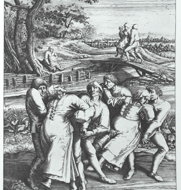 L’histoire de cette épidémie est l’une des plus étranges jamais enregistrées. En juillet 1518, alors que la chaleur frappait la France et particulièrement l’Alsace, une femme du nom de Frau Troffea se mit à danser au milieu de la rue, sans aucune raison apparente. Il n’y avait ni musique ni événement particulier pour expliquer son comportement singulier.