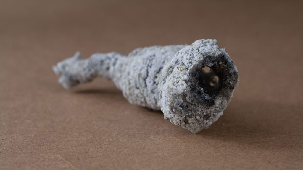 Cette découverte est née d’un phénomène appelé fulgurite ou « éclair fossilisé ». Lorsque la foudre a frappé un arbre, elle a créé cette structure spéciale, et à cause de son immense énergie, des réactions chimiques super bizarres se sont produites.
